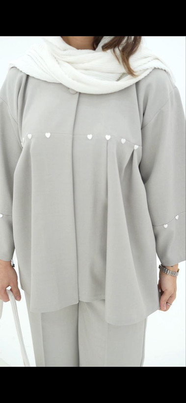 این ست شیک و خاص که با نام "قلب صدفی" (کد ۳۰۰) شناخته میشود، شامل یک تونیک/کت کوتاه با قد ۷۰ سانتیمتر و شلوار ست از جنس مرغوب کرپ بولگاری A+ است. این پارچه باکیفیت دارای ویژگیهای ضد چروک، بدون آبرفت و عدم پرزدهی است و برای استفاده در مجالس و روزمره در تمام فصول مناسب میباشد. وجه تمایز اصلی این مدل، تزئینات ظریف و دستدوز قلبهایی از جنس سنگ صدف است که در قسمت سینه و آستینها به کار رفته و به لباس جلوهای خاص بخشیدهاند. این محصول به صورت فری سایز (مناسب ۳۸ تا ۴۶) ارائه شده تا طیف وسیعی از افراد بتوانند از این استایل راحت و زیبا بهرهمند شوند.